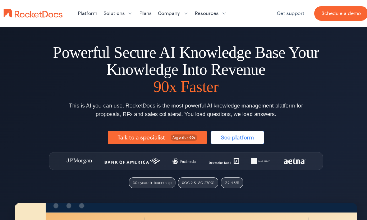 RocketDocs is a cloud-based response management platform for RFPs, DDQs, security questionnaires, and proposal workflows. It combines a governed content library, document parsing, workflow routing, Office-native review, and private AI drafting for teams that need faster, more controlled responses, especially in regulated and enterprise environments. Originally founded as Proposal Software in 1994.